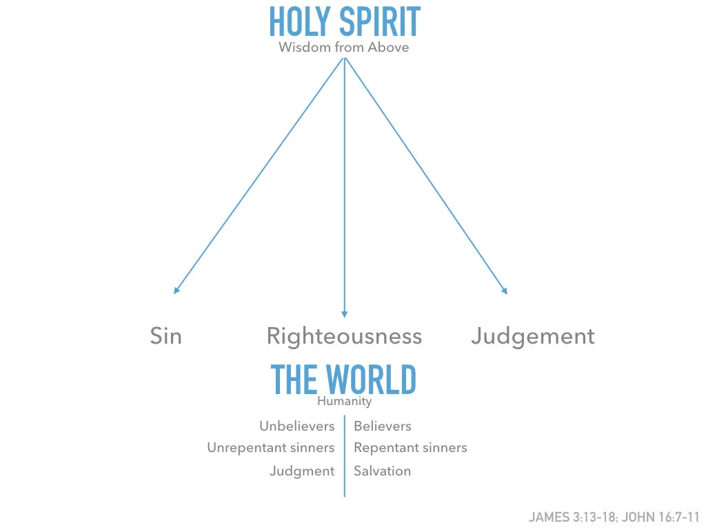 ““But now I am going away to Him who sent Me, and not one of you asks Me, ‘Where are You going?’ Yet, because I have spoken these things to you, sorrow has filled your heart. Nevertheless, I am telling you the truth. It is for your benefit that I go away, because if I don’t go away the Counselor will not come to you. If I go, I will send Him to you. When He comes, He will convict the world about sin, righteousness, and judgment: About sin, because they do not believe in Me; about righteousness, because I am going to the Father and you will no longer see Me; and about judgment, because the ruler of this world has been judged.””